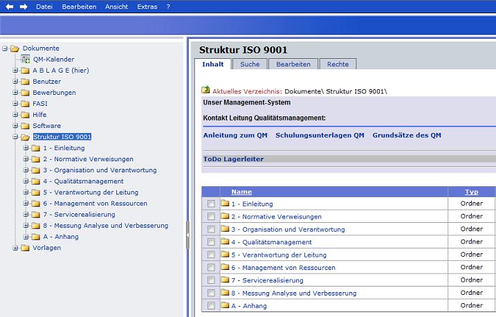 Sie haben jederzeit den Zugriff auf alle Dokumente und Unterlagen. Wir bieten die Abbildung der Normstruktur ISO EN 9001:2008.